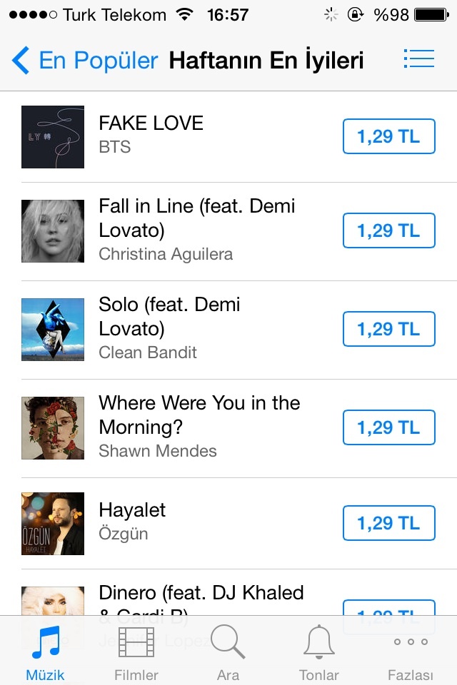 Kore saatine göre 21:00 (Türkiye saatine göre 15:00) itibariyle ise “FAKE LOVE” tüm listelerde zirvede kalmaya devam ediyor.