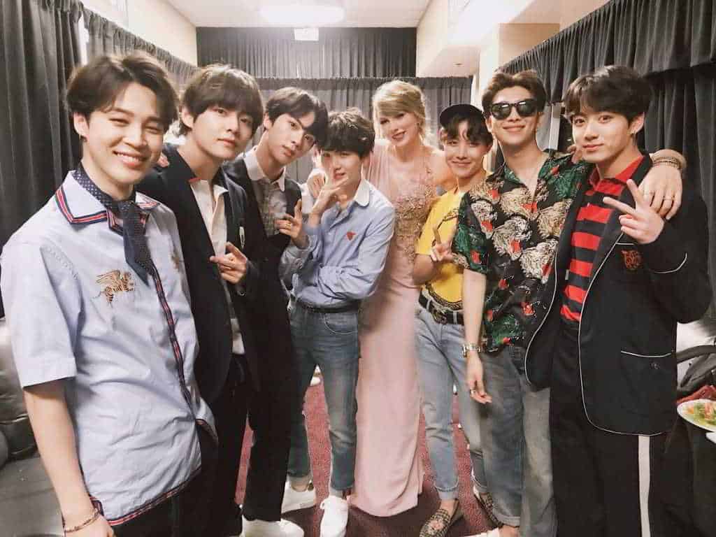 Taylor Swift de BTS ile çekildiği bir fotoğrafı resmi Instagram hesabından paylaşarak, “♥♥♥ BTS ♥♥♥ Sizinle tanışmak çok harika!! Harika bir iş çıkarıyorsunuz!!” yazısını yazdı.