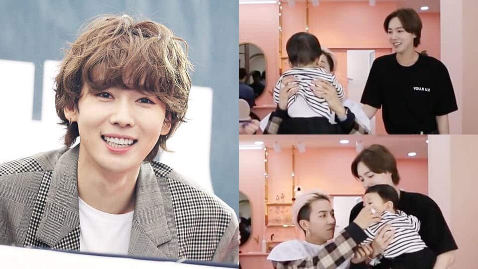 Jinwoo bebekle birlikte çok tatlı ve masum görünüyor.