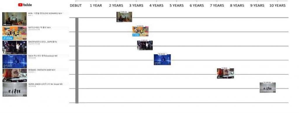 Youtube’da 100 Milyon İzlenmeye Ulaşan K-pop Erkek Gruplarının Süreleri: