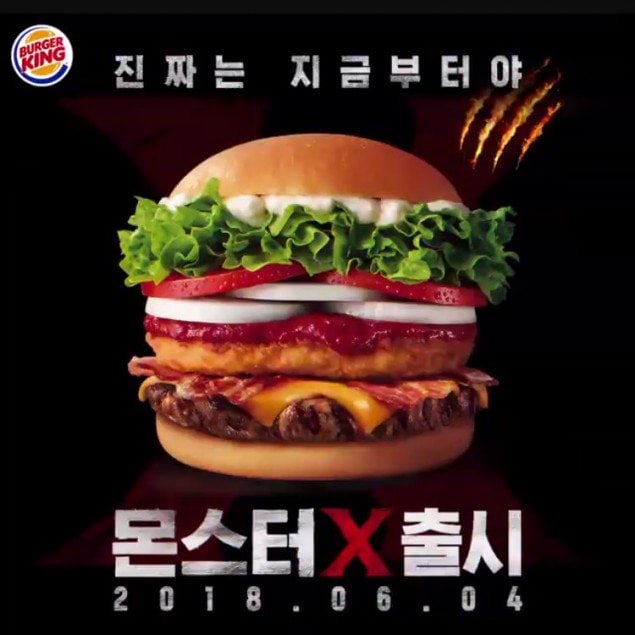 Burger King’in Kore restoranı “Monster Baby” ve “Monster” isimlerinden oluşturulmuş “Monster X” hamburgerlerini piyasaya sürecek.Açıkçası isim hemen Korede isim benzerliğinden dolayı “Monsta X” adını akla getirdi ve grubun adı 몬스타엑스 ile hamburgerin adı 몬스터엑스 aynı(Monsta X’in hayran adı Monbebe Fransızcada ‘benim bebeğim’ anlamına geliyor).Bu yüzden “Monster Baby” adıyla benzerlik taşıyor