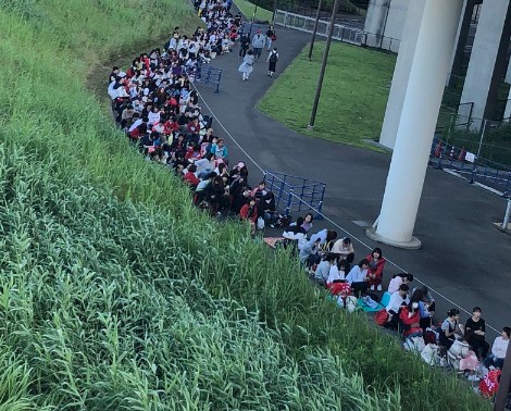 진짜진짜 끝이 보이지 않는 굿즈 줄…..?? 날씨는 맑지만 바람이 쵸큼많이 분다…? 바람 너임마 공연시작하면 눈치있게 사라져라^ #동방신기 #TVXQ #TOHOSHINKI #유노윤호 #정윤호 #ユンホ #닛산스타디움 #NISSANSTADIUM #日産 #日産スタジアム #前人未到の日産スタジアム #日産スタジアム3days pic.twitter.com/UktiXOcICH