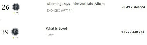 EXO-CBX şu ana kadar 360 Bin albümün üzerinde satış yaparken, TWICE yaklaşık 340 Bin satışa ulaştı.