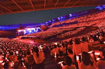 Nissan Stadyumu 2013. Alan, TVXQ’nun resmi rengi İnci Kırmızısı ışıklı çubuklarıyla ‘Kırmızı Okyanus’a döndü.