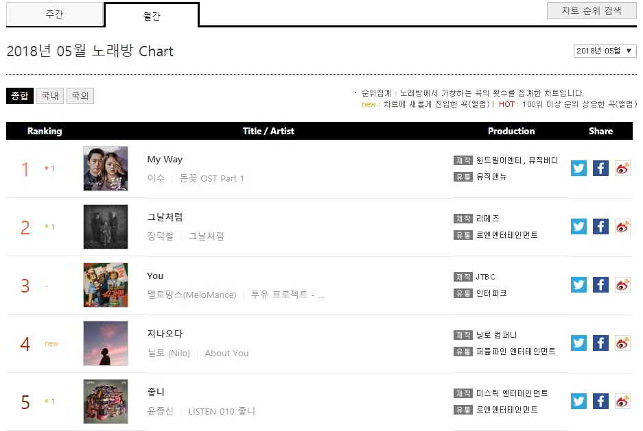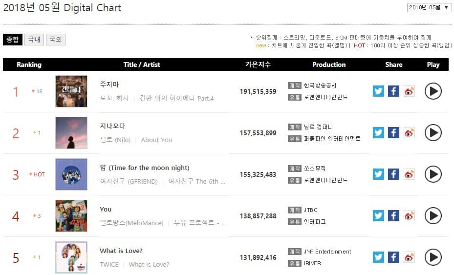 <Gaon Mayıs Ayı Dijital Şarkı Sıralaması>