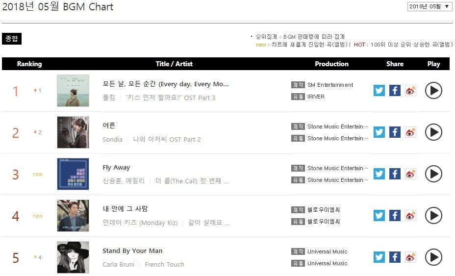 <Gaon Mayıs Ayı BGM (Arka Plan Müzik) Sıralaması>