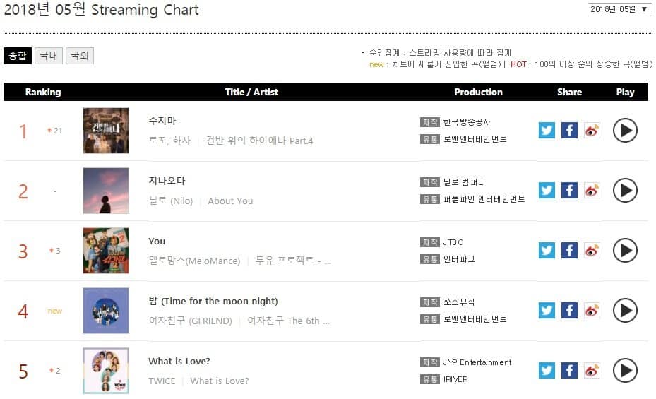<Gaon Mayıs Ayı Stream Sıralaması>