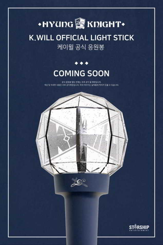 Onun ajansı Starship Entertainment, 7 Haziran’da SNS aracılığıyla K.Will’in ilk resmi lightstick’ini yayınladı. Işık çubuğuyla ilgili ayrıntılar açıklanmadı, ancak hayranlar, adının içinde bulunduğu oldukça güzel bir ışık çubuğunun fotoğrafını görüyorlar.
