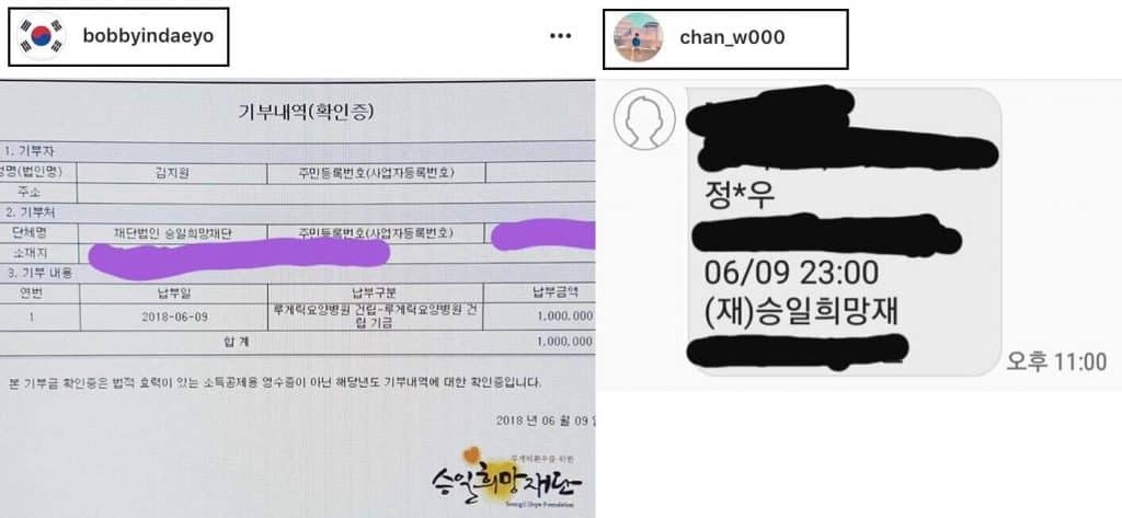 Yunhyeong; Junhoe ve Bobby’nin meydan okumasını kabul etti ve ayrıca Bobby ve Chanwoo gibi bağış yaptı.
