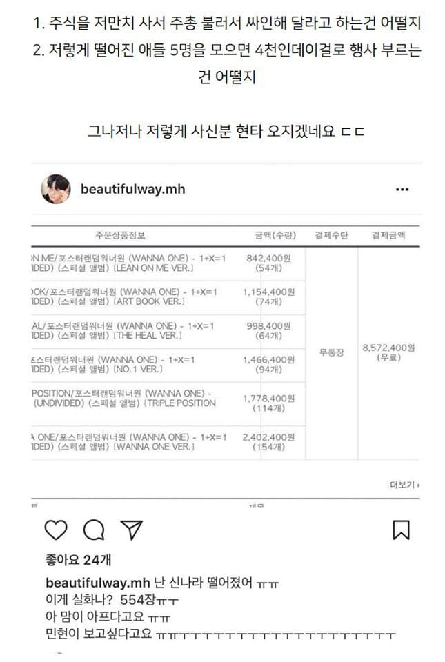 “Synnara’dan çıkarıldım, bu gerçek mi? 554 albüm aldımTT TT Ah, kalbim acıyor TT TT Minhyun’u özlüyorumTT TT ”
