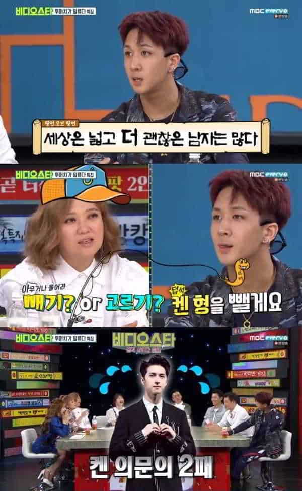Ardından Kim Sook şakayla karışık sordu, “Eğer VIXX üyelerinden birisini seçmek zorunda kalsaydın kimi seçerdin? Ya da sadece seçmeyeceğin bir kişiyi söyle.” Ravi aniden cevap verdi, “Ken‘i seçmiyorum.” Daha sonra nedenlerini şöyle açıkladı. “Ken benden bir yaş büyük. Onu seçtim çünkü o masum ve bebek gibi.”