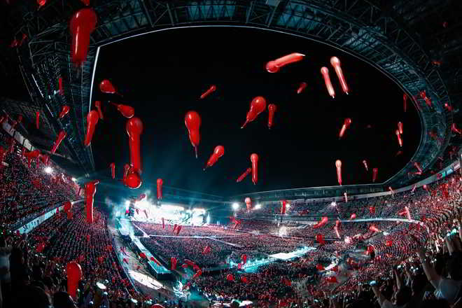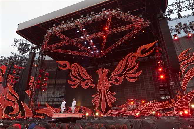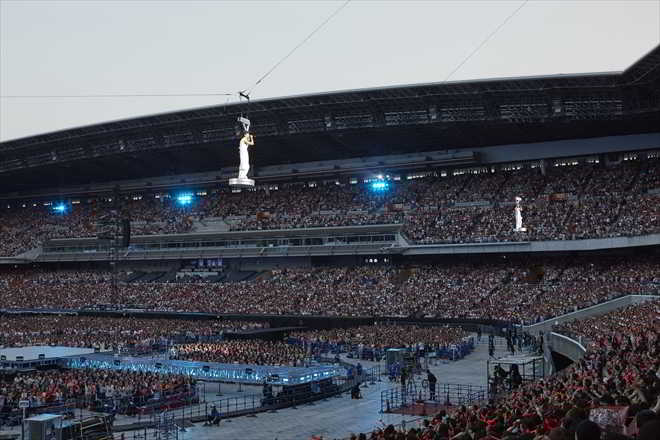TVXQ’nun canlı performansları çarpıcı ve heyecan dolu. 8 Haziran’da ilk günün performansından izlenimlerimi belirtmek isterim. O gün ‘Reboot’ şarkısıyla hareketli sahne arenanın arkasından itibaren kurulmuş ve 2 sahne birleştirilmişti. Dome turları beni hayrete düşürmüştü ama Nissan Stadyumu gibi geniş bir alanda olması tam olarak şaheserdi.
