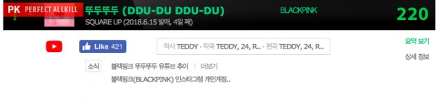 BLACKPINK ilk mini albümü ‘Square Up‘ın başlık şarkısı “DDU-DU DDU-DU” ile listelerde perfect all-kill (PAK) başardı.