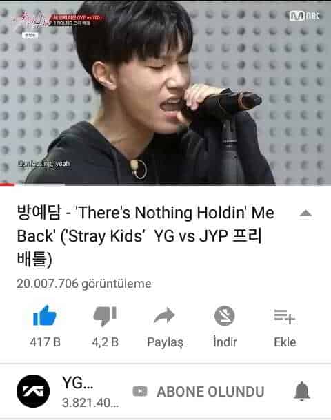 YG stajyeri Bang Ye Dam‘ın JYP’nin stajyer hayatta kalma programı “Stray Kids”de Shawn Mendes‘in “There’s Nothing Holdin’ Me Back” şarkısına yaptığı cover 20 milyon izlenmeyi aştı.