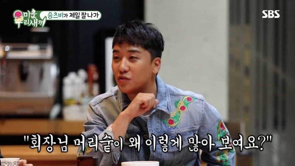 Ayrıca YG Entertainment’ın kurucusu Yang Hyun Suk ile etkileşim hakkında ipuçları paylaştı. Seungri, “Geçmişte, Yang Hyun Suk bir kaplan gibiydi. Ama bir çocuk sahibi olduktan ve bir aile kurduktan sonra biraz yumuşadı” dedi. O, “Bir iltifatla onunla konuşmaya başla. Böyle şeyler söylediğinizde bunu seviyor, “Bugünlerde çok fazla kilo kaybettin!” gibi” diyerek ekledi. Seungri ayrıca gizlilik için BLACKPINK’e yemin ettirdi v e “Yang Hyun Suk’ın bu günlerde duyduğu şey, “Saçların bugünlerde çok kalın görünüyor!” dur” dedi.