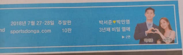 26 Temmuz tarihinde Sports DongA gazetesinin henüz bayilere dağıtılmamış 27/28 Temmuz’a ait basılı kopyası internete düştü Park Seo Joon ile Park Min Young‘ın sevgili oldukları “Park Seo Joon & Park Min Young: 3 yıldır gizli bir şekilde beraberler” başlığı ile haber oldu.