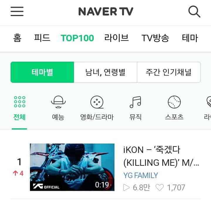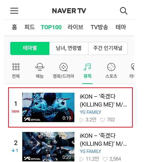 Müzik video teaserı Naver‘ın TOP100 müzik video listesinde ve genel video listesinde 1.sıraya yerleşti.