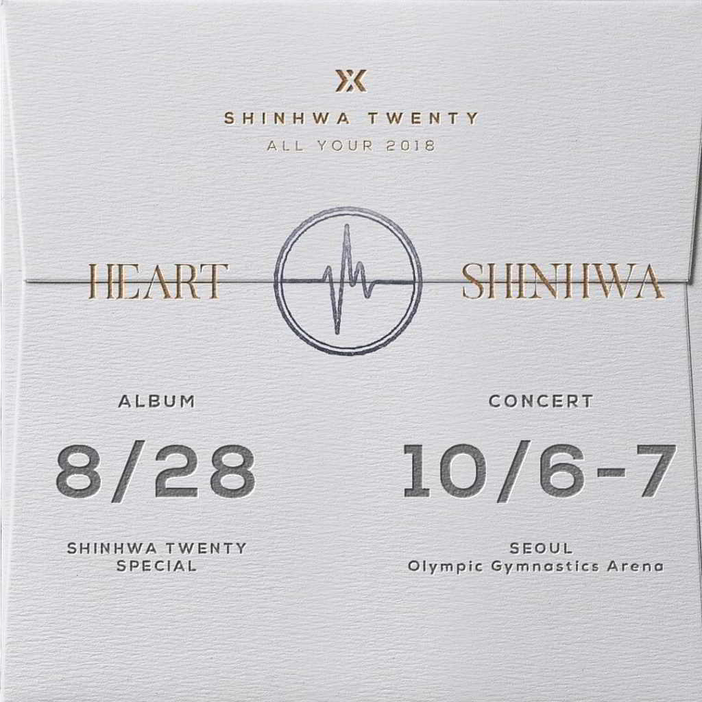 Shinhwa’nın yıl boyunca sürecek olan 20. yıldönümü projesi ” All Your 2018 “in sıradaki bölümü olan özel albüm hakkında bilgiler ortaya çıktı. Özel albüm ” Heart “ 28 ağustosta yayınlanacak ve albümün yayınlanmasının ardından, 6-7 ekimde, Seul’de 20. yıldönümü konseri gerçekleştirilecek.