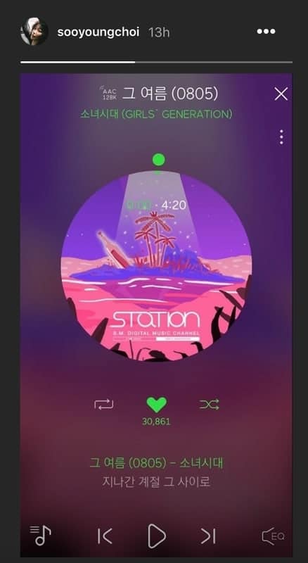 Ayrıca Sooyoung, Instagram hikayesinde Girls Generation’ın Sailing (0805) şarkısı çalarken bir ekran görüntüsünü paylaştı.