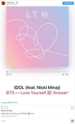 2) Nicki Minaj’ın düeti IDOL’ın ek versiyonu olacak ve dijital ve ayrı olarak yayımlanacak. Sanırım özel? edisyon! Ah tüylerim diken diken oluyor, BTS’in klası mükemmelㅠㅠㅠㅠ Bunu kabul ettiği için Nicki Minaj’a da teşekkürler ㅠㅠ♡
