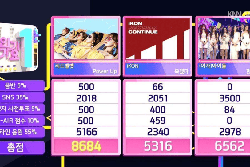 SBS’deki “Inkigayo”da ödül kazanan Red Velvet tebrikler! İkinci olan (G)I-DLE’ın “HANN” şarkısı ve üçünçü olan da iKON’un “Killing Me” şarkısı oldu.