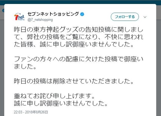 7NET gün içinde paylaşımı silerek bunun yalnızca bir hata olduğunu belirterek 26 Ağustos’da fanlardan özür diledi.