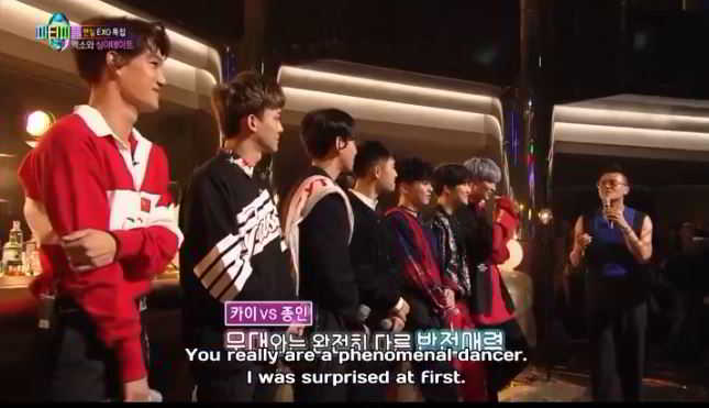 Geçen sene EXO’nun katıldığı “Party People” programında eski jenerasyonda dans denilince akla gelen ilk isimlerden Park Jinyoung Kai için, “Gerçekten olağanüstü bir dansçısın. Seni ilk izlediğimde çok şaşırmıştım.” dedi.