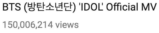BTS‘in en sonki klibi, Kore saati ile 24 Ağustos’ta 18:00’de (Türkiye saati ile 12:00) yayımlandı. Yayımlandıktan 18 gün, 1 saat 50 dakika sonra 11 Eylül’de, Kore saati ile 19:50’de 150 milyon izlenmeyi aştı.
