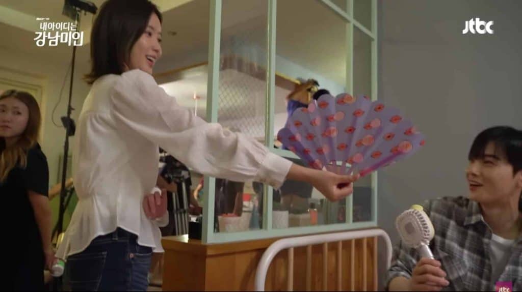 Sarılma sahnesi için prova yapıyorlar. Cha Eun Woo ve Im Soo Hyang kollarını birleştirip durmak için doğru yeri bulamamışlar gibi görünüyor.