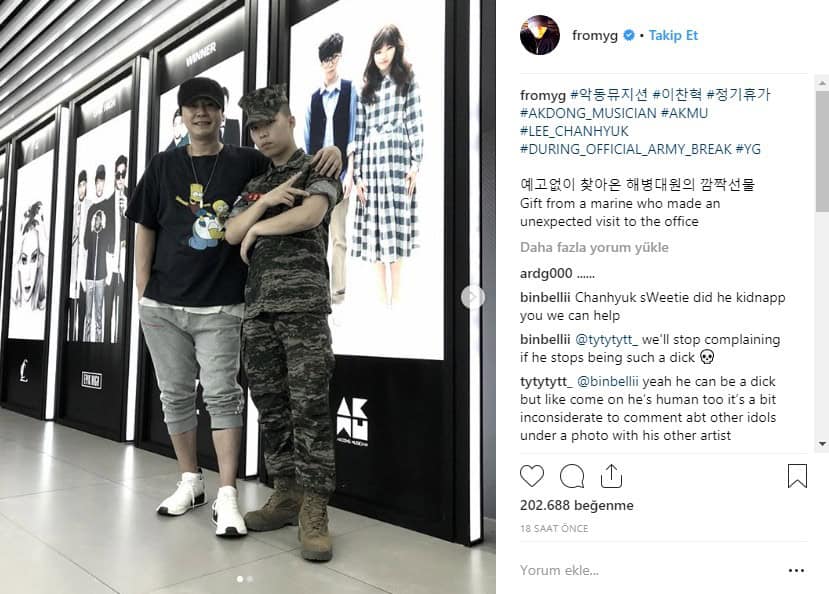 10 Eylül’de Yang Hyun Suk, Instagram aracılığıyla Chanhyuk ile çekildiği fotoğraflarını paylaştı.