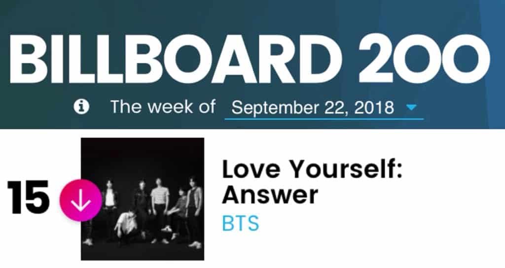 Billboard, 22 Eylül’de sona erecek hafta için listelerini yayımladı ve “Love Yourself: Answer”, Billboard 200 listesinde geçen hafta 8. sıradayken, bu hafta 15 numarada geldi.