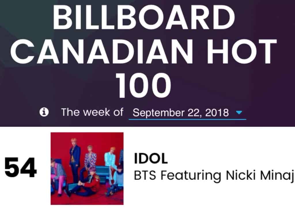 “IDOL“, Kanada Hot 100 listesinde 54. sırada yer alırken, “Love Yourself: Answer” ise Kanada Albümleri listesinde 13. sırayı alıyor.