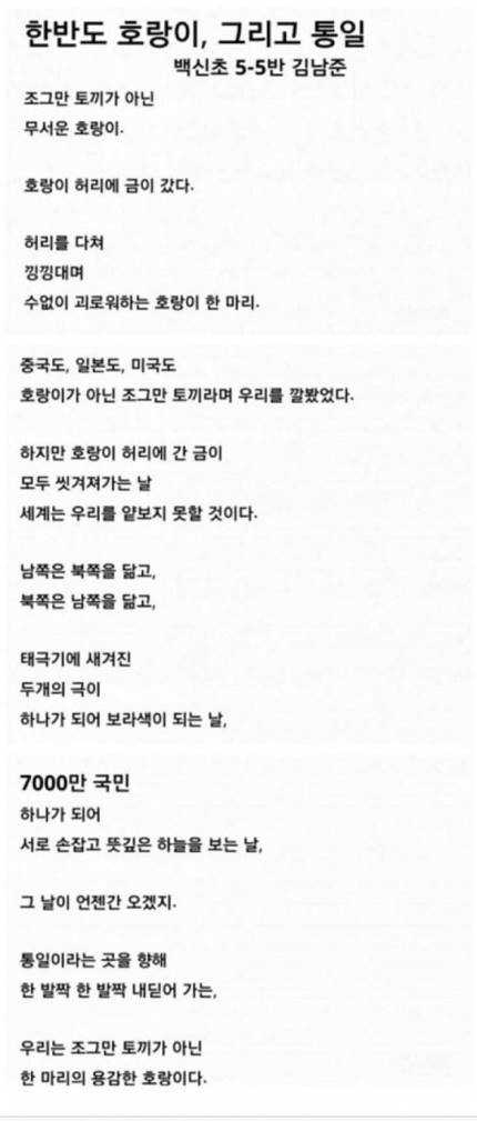 Kim Namjoon tarafından yazıldı (Baik-Sin ilkokulu, 5.sınıf öğrencisi)
