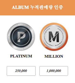 Albümler 250.000 satışa ulaştıklarında; yayımlanmalarından en az 6 hafta sonra sertifikalanıyor. GOT7’ın 2018 yılında ‘Eyes On You‘dan sonra ikinci albümü “Present: You” platin sertifikasına sahip olurken; NU’EST W “Who You” ile ilk kez sertifika almış oldu.