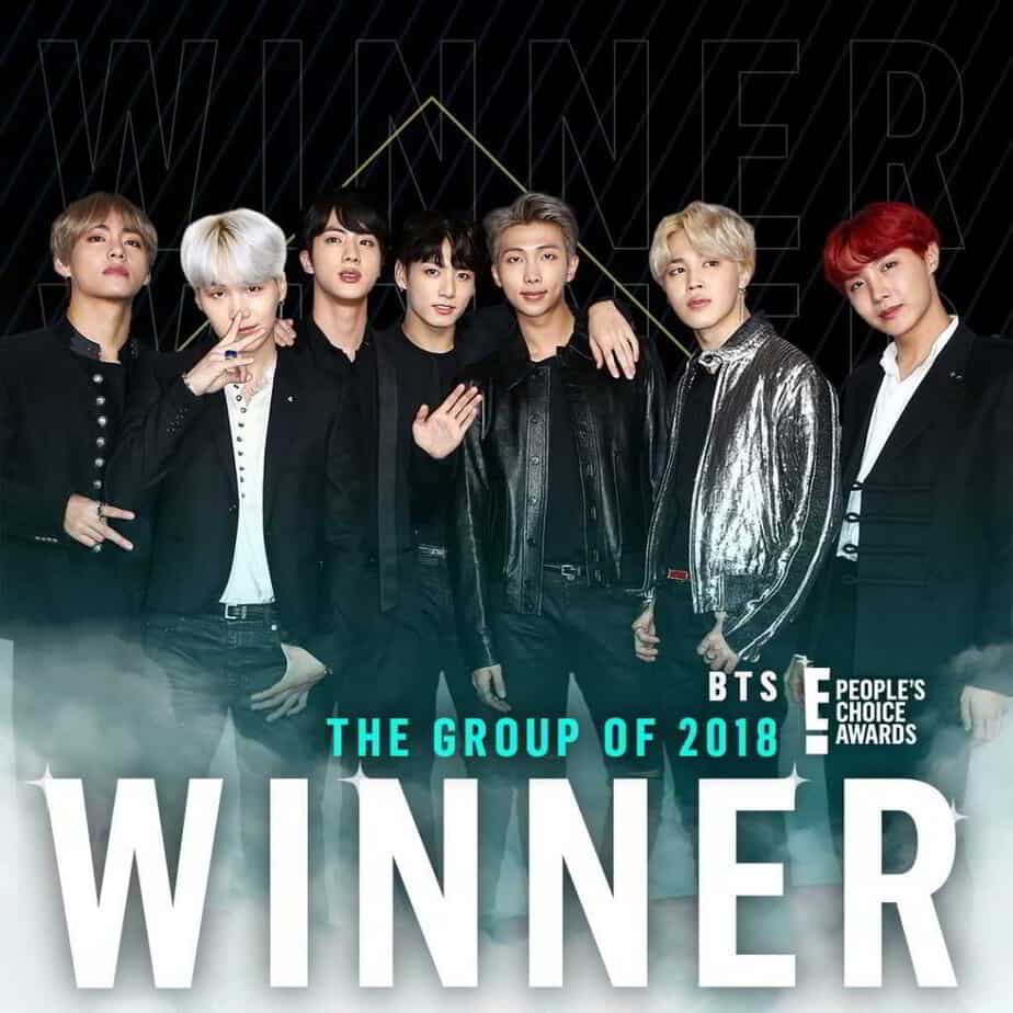 Congratulations @bts_bighit for winning The E! People's Choice Award for #TheGroup of 2018! #PCAs pic.twitter.com/WVyVxZYIMP