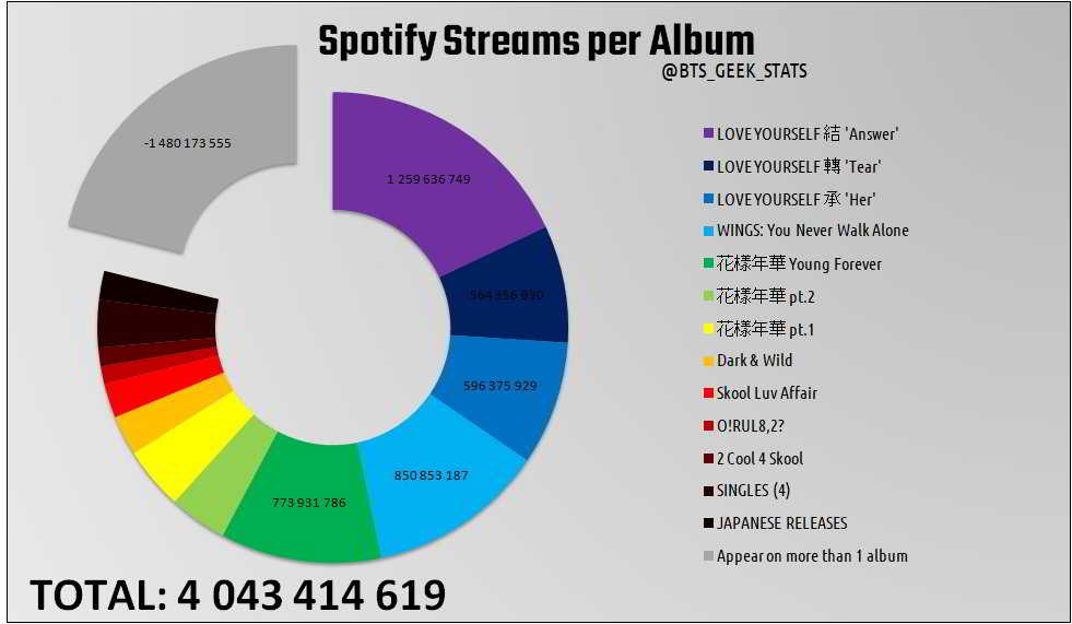 BTS’in en son yayımlanan albümü Love Yourself 結 ‘Answer’, Spotify’da 1,25 milyar dinlenme ile en çok dinlenen K-Pop albümü olmaya devam ediyor.