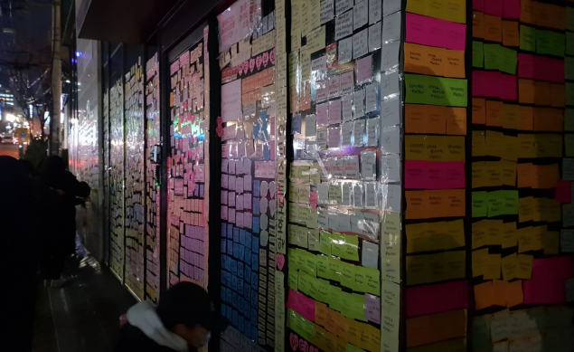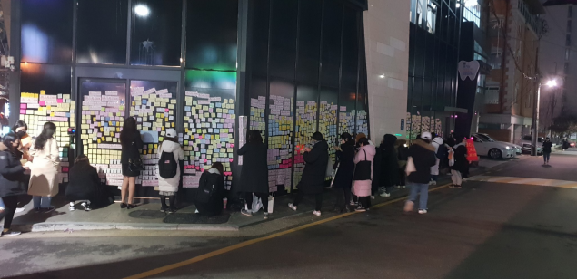 Sosyal medya üzerinden tepki gösteren hayranlar bir cevap alamayınca Pledis Entertainment binasına yürüdü ve protesto için burada toplandı. Hayranlar burada Pledis’e anlamlı mesajlar verdi. Binanın ulaşılabilen her yerine konuyla alakalı post-it notları yapıştırıldı.