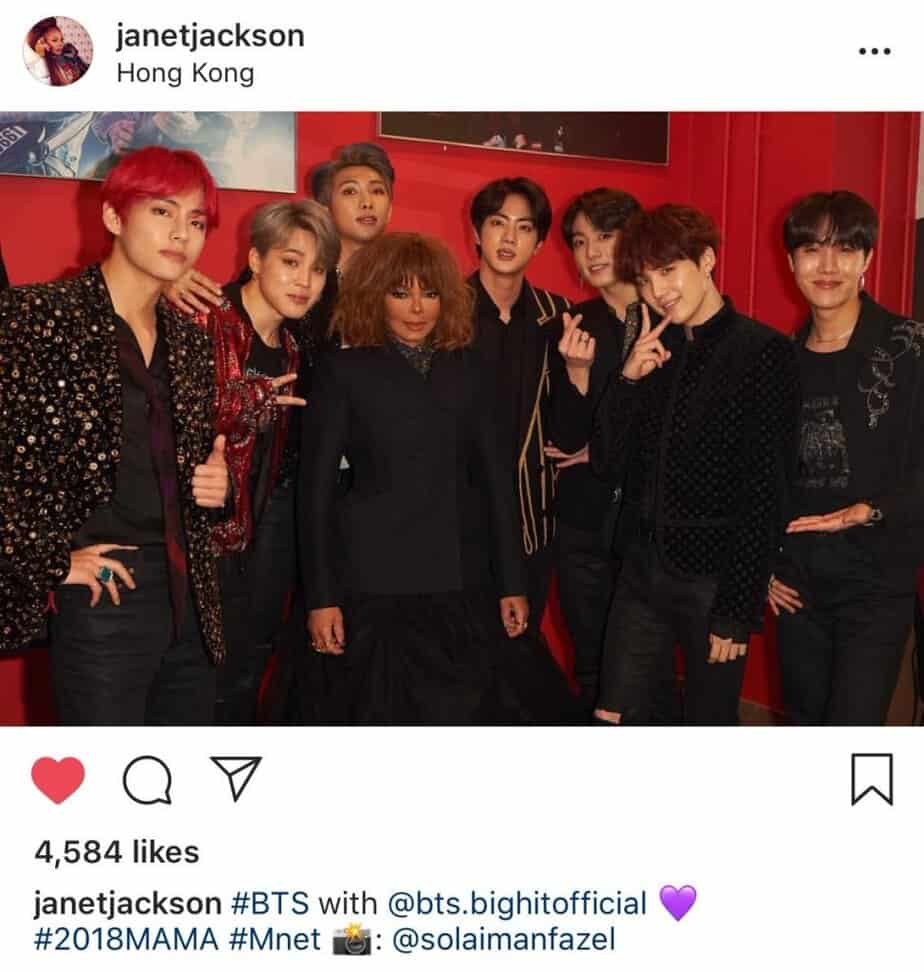 Gösteri sırasında Janet Jackson, BTS ile Instagram üzerinden bir fotoğraf yayımladı.