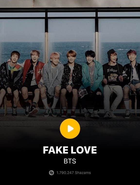 Billboard Hot 100 listesine ilk 10’dan giriş yapan ve Altın Sertfikalı Fake Love, Shazam‘ın yıl sonu listesinde K-pop’un en çok shazamlanan şarkısı oldu!