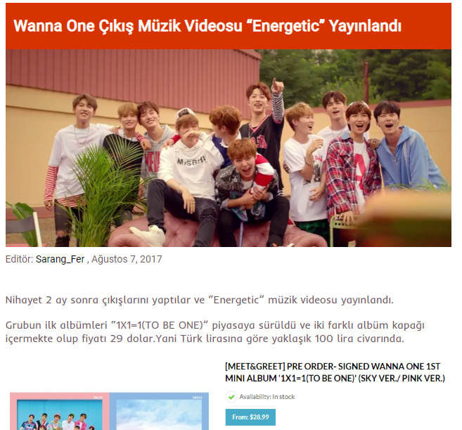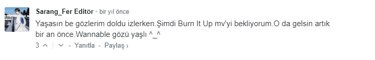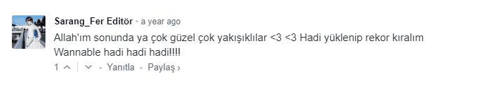 Wanna One oluştuktan sonra onların çıkışını dört gözle bekledim.Çünkü Wannable olmuştum ve her hayran olarak bende sevdiğim grubun çıkış yapmasını istedim.O zaman fanlık konusunu tekrar gözden geçirmiştim ama fandomdan çıkmak istemedim.Çünkü onları gerçekten sevmiştim.Birkaç ay beklemeden sonra Wanna One’ın çıkışı için mv teaser videosu yayınlandı ve Korezinde haberini ben açmıştım.Şimdi haberle altına yaptığım yorumun ekran görüntüsünü koyuyorum