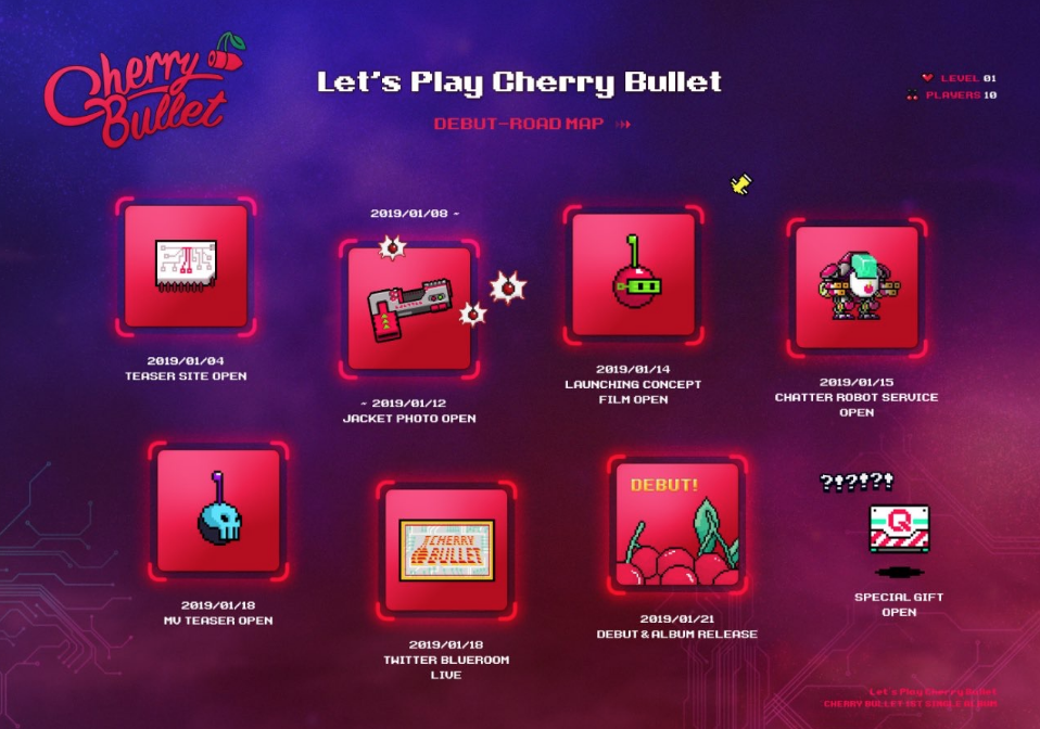 Cherry Bullet, FNC Entertainment şirketi tarafından oluşturulan on üyeli yeni bir kız grubudur. Çaylak kız grubu, 21 Ocak tarihinde ‘Let’s Play Cherry Bullet‘ albümü ile ilk çıkışını yapmaya hazırlanıyor. Grubun oyun temalı konsept fotoğrafları kısa bir süre önce yayınlandı. (Tıklayın)