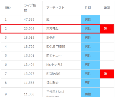 Kei Nishiyama ayrıca biletleri en zor bulunan (en çok talep gelen) grupların listesini yayımladı ve TVXQ Arashi’nin ardından 2. sırada ye aldı.