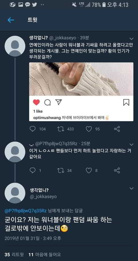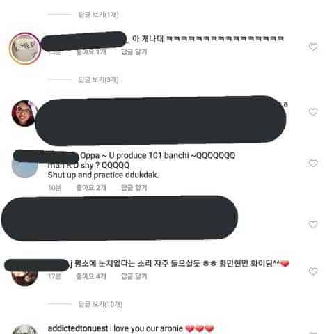 [103+ 3-] İster Wannable olsun ister akgae olsun (ç/n: üyeleri sadece bireysel olarak destekleyen hayranlar) insanların hesaplarına böyle yorumlar yapıldığı için üzgünüm.