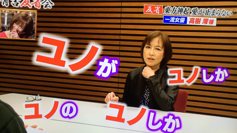 184.Takaki Mio: “Ben TVXQ’nun en büyük fanıyım, özellikle Yunho’nun. Dansı çok keskin.. Yunho şöyle, Yunho böyle.. Tanrının bölgesi.. Bence Yunho’nun kendisi başlı başına bir sanat. Hareketleri bir kadınınkinden daha güzel. Dansı, şarkı söylemesi, hepsi harika. Eşim Yunho ile aynı gün doğdu. Gurur duyuyorum.”|NTV Ariyoshi Hanseikai~2016