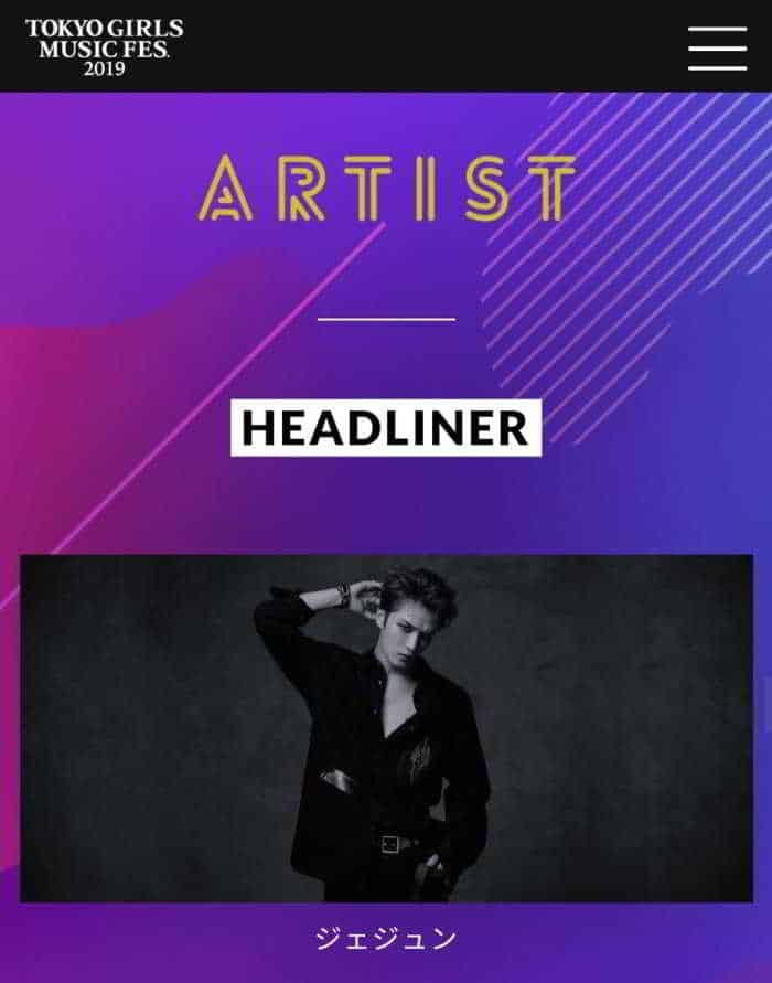 Jaejoong, “2019 Tokyo Girls Müzik Festivali’nde sahne alacağım! Çok heyecanlıyım ve turuma başlamadan önce fanlarımı görmek için sabırsızlanıyorum. Ana sanatçı olarak iyi bir sahne sunmak için elimden geleni yapıyorum ve herkesi heyecanla doldurmak için elimden geleni yapacağım!” dedi.