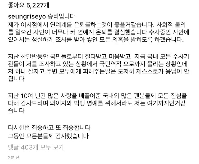Seungri’nin İnstagram Paylaşımı Türkçe Çevirisi