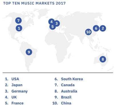Stream servisleri, müzik sektörü üzerinde önemli bir etkiye sahip oldu ve dünyanın dört bir yanından gelen sanatçıların yeni pazarlara ve izleyicilere ulaşmalarını sağladı. Asya ve Avustralya’nın yerel endüstrileri ardı ardına 3 yıl boyunca, gelir artışı (% 5,4 oranında) bildirmiş ve Latin Amerika’nın geliri % 17,7 oranında artmıştır. Çin ilk defa, müzik piyasasının Top 10 sıralamasını bozmayı başardı. Bu büyük ölçüde, Tencent gibi yerel işletmeler ve büyük müzik şirketleri arasındaki anlaşmalardan kaynaklandı.