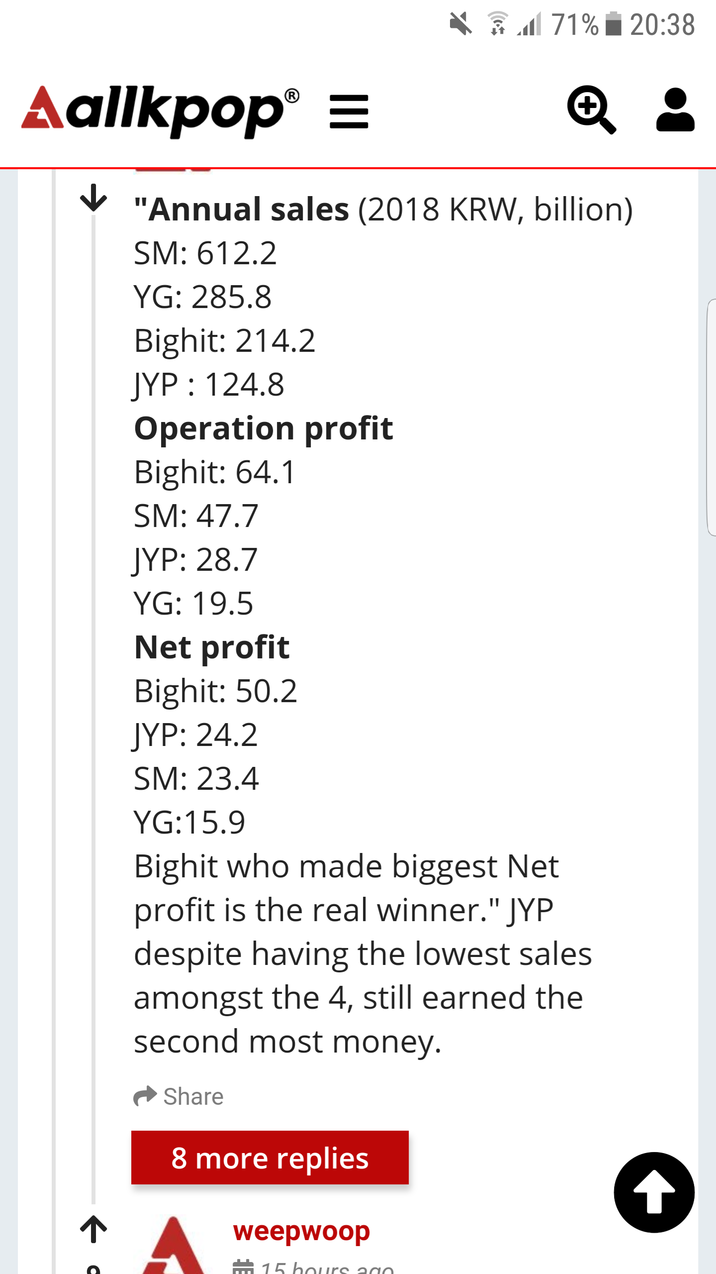 Top 4 şirketin arasında JYP Entertainment geçmiş yılki toplam geliri $94 Milyon (102 bn won)’a oranla 2018’de $109 Milyon (125 bn won) ile en az büyüme gerçekleştiren şirket oldu. GOT7 ve TWICE JYP’nin en katkı sağlayan sanatçıları.