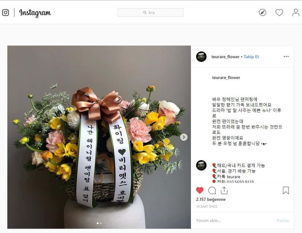 2 Nisan’da bir çiçekçi, Instagram hesabından, J-Hope tarafından sipariş edilen ve 30 Mart’ta Jung Hae In’e gönderilen bir çiçek sepeti fotoğrafı paylaştı. Jung Hae’ye hayran buluşmasında destek olmak isteyen J-Hope’un gönderdiği çiçeğin üzerindeki kurdelelerin sol tarafında, “Hae In hyungun hayran buluşmasında bileti olmayan tek kişi benim” yazarken, sağ tarafında da, “ Fighting ♥ BTS Hobi ♥” yazıyordu.