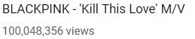 7 Nisan’da Kore saatine göre 14:15’te en sonki müzik videosu “Kill This Love” YouTube’da 100 Milyon kez izlendi, bu sayıya ulaşması 2 gün, 14 saat ve 15 dakika sürdü.